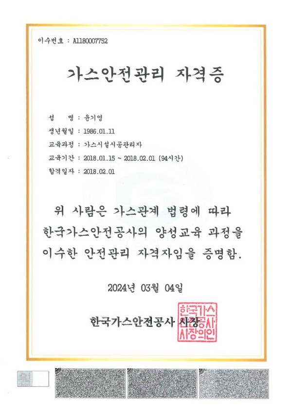 가스안전관리 자격증